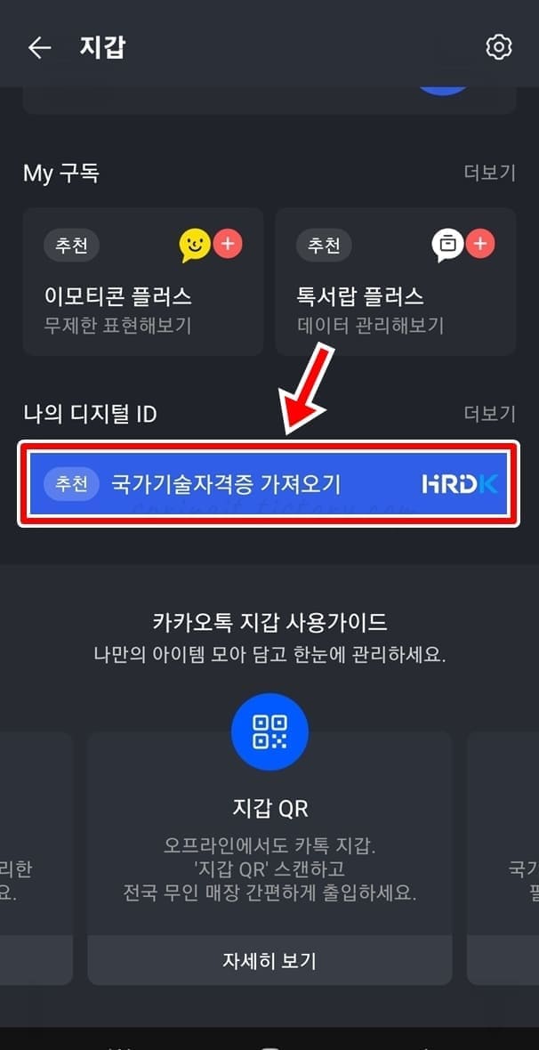 2. 나의 디지털 ID에서 국가기술자격증 가져오기를 클릭합니다.