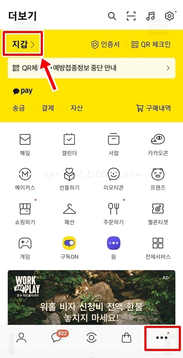 1. 카카오톡 더보기 메뉴에서 지갑을 누릅니다.
