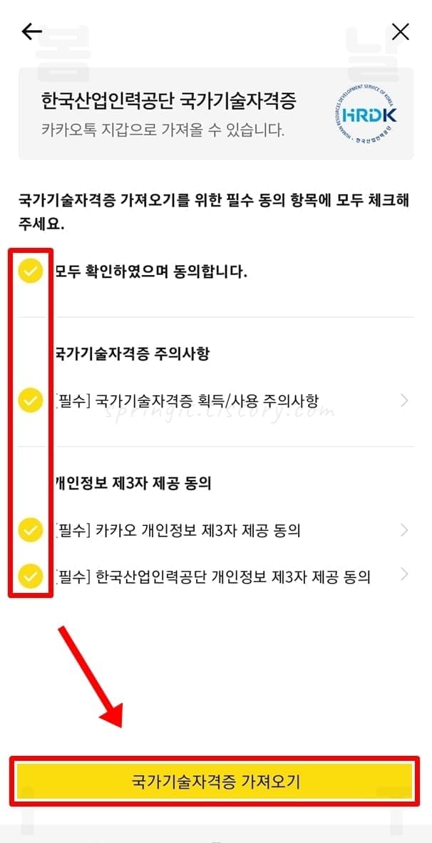 4. 국가기술자격증 가져오기를 클릭합니다.