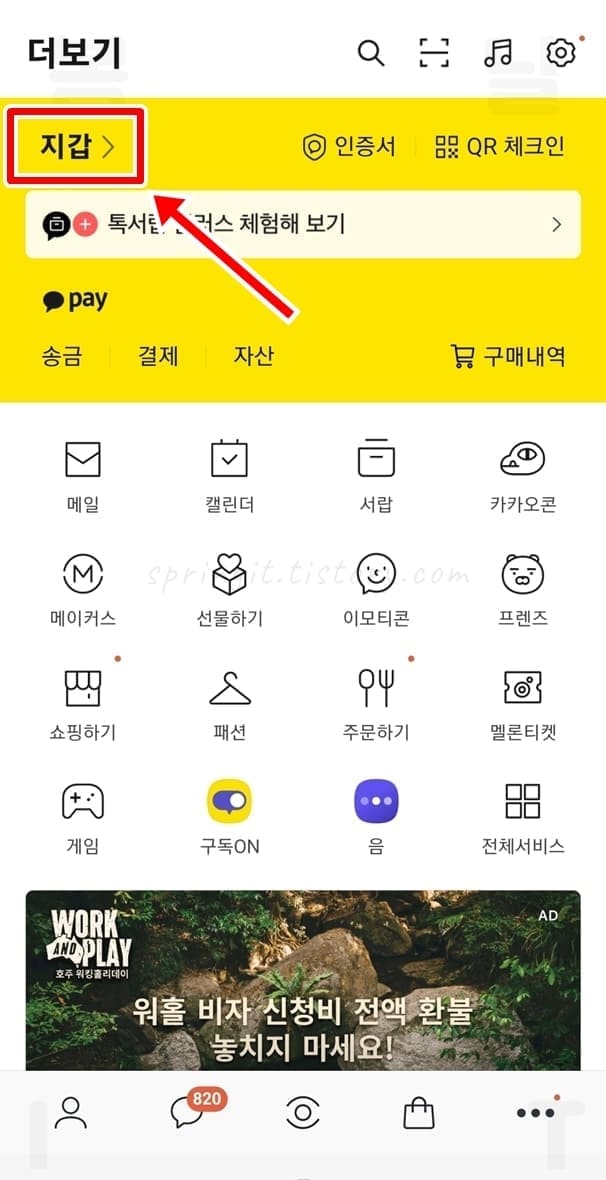 1. 카카오톡 더보기 메뉴에서 지갑을 누릅니다.