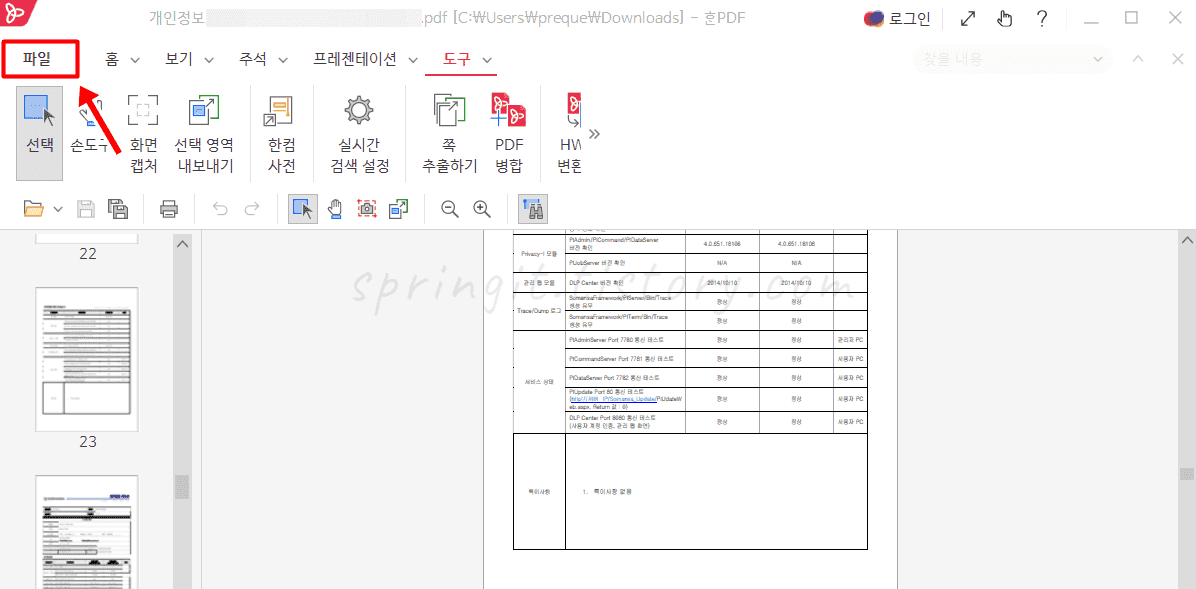 1. 암호를 설정하고 싶은 한PDF 파일을 실행합니다.