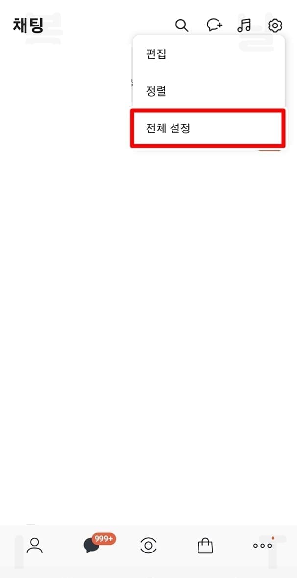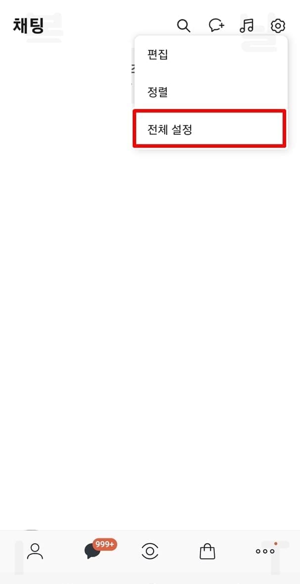 1. 카톡 앱을 실행하고 톱니바퀴 버튼을 누릅니다.