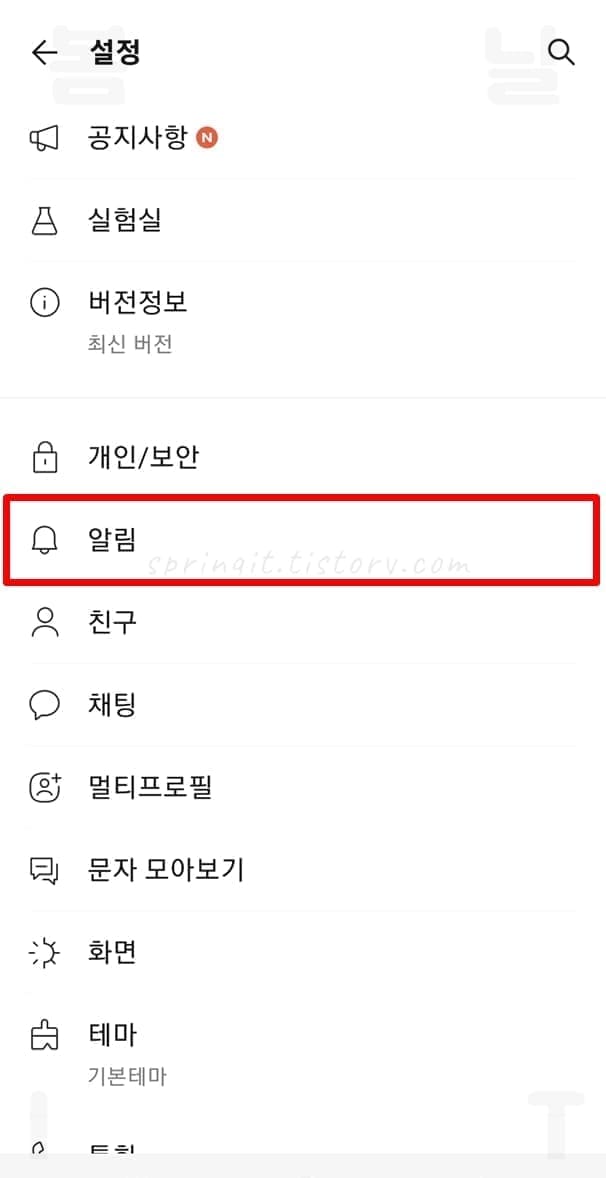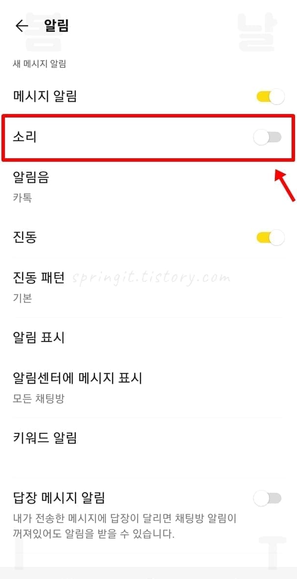 카카오톡 설정에서 보이스톡 알림 무음 설정하기