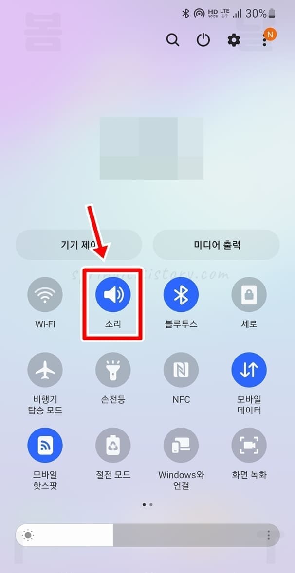 1. 스마트폰의 상단바를 아래로 내립니다.