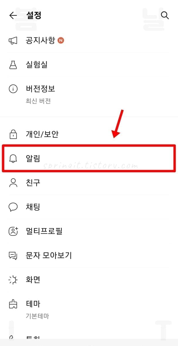카카오톡 설정에서 보이스톡 알림 무음 설정하기