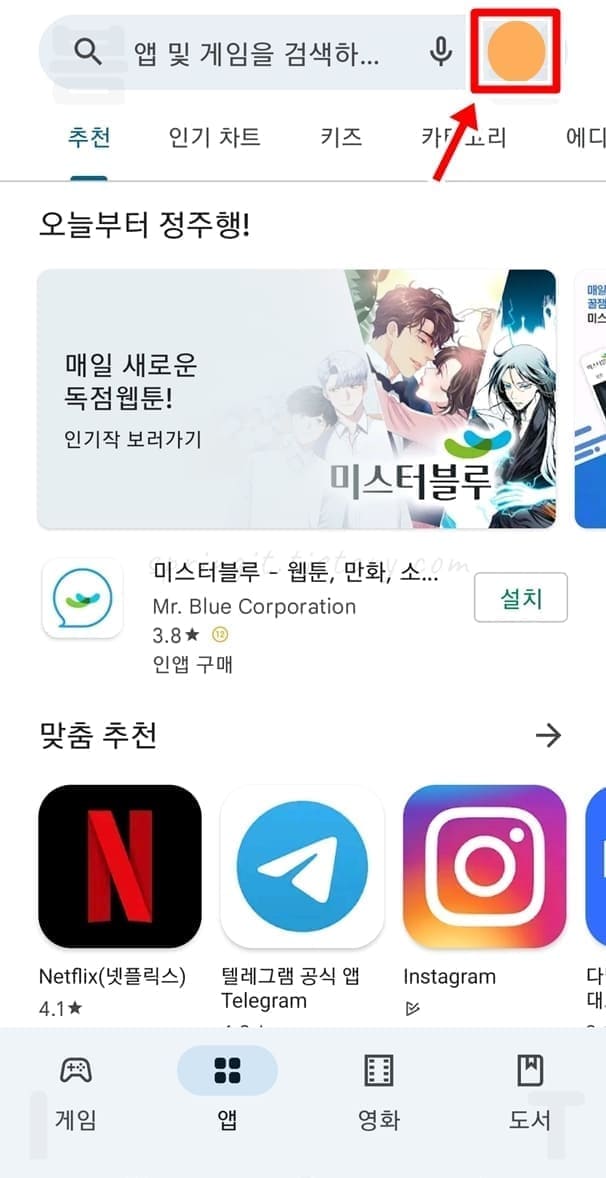 1. 스마트폰에서 Play 스토어 앱을 실행합니다.