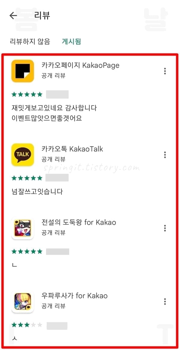 6. 내가 작성한 모든 구글 플레이 스토어 리뷰를 확인합니다.