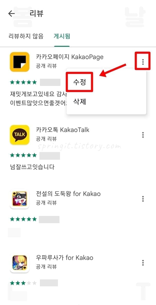 구글 플레이 스토어 리뷰 수정하는 방법