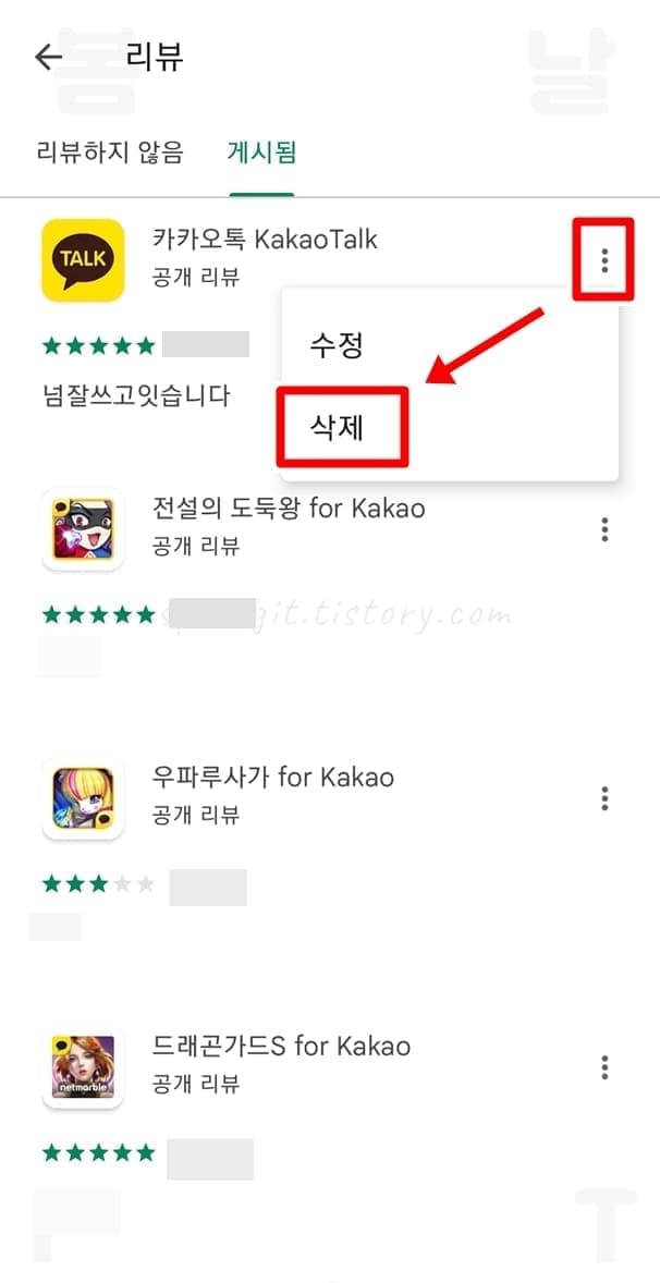구글 플레이 스토어 리뷰 확인 및 삭제 방법