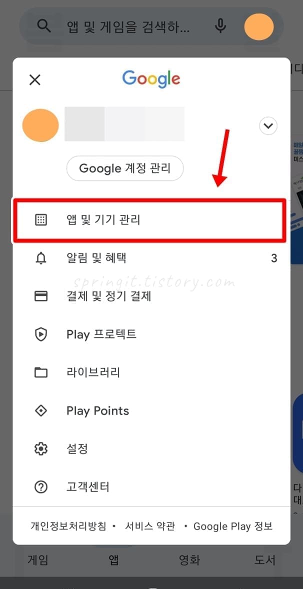 3. 앱 및 기기 관리를 누릅니다.