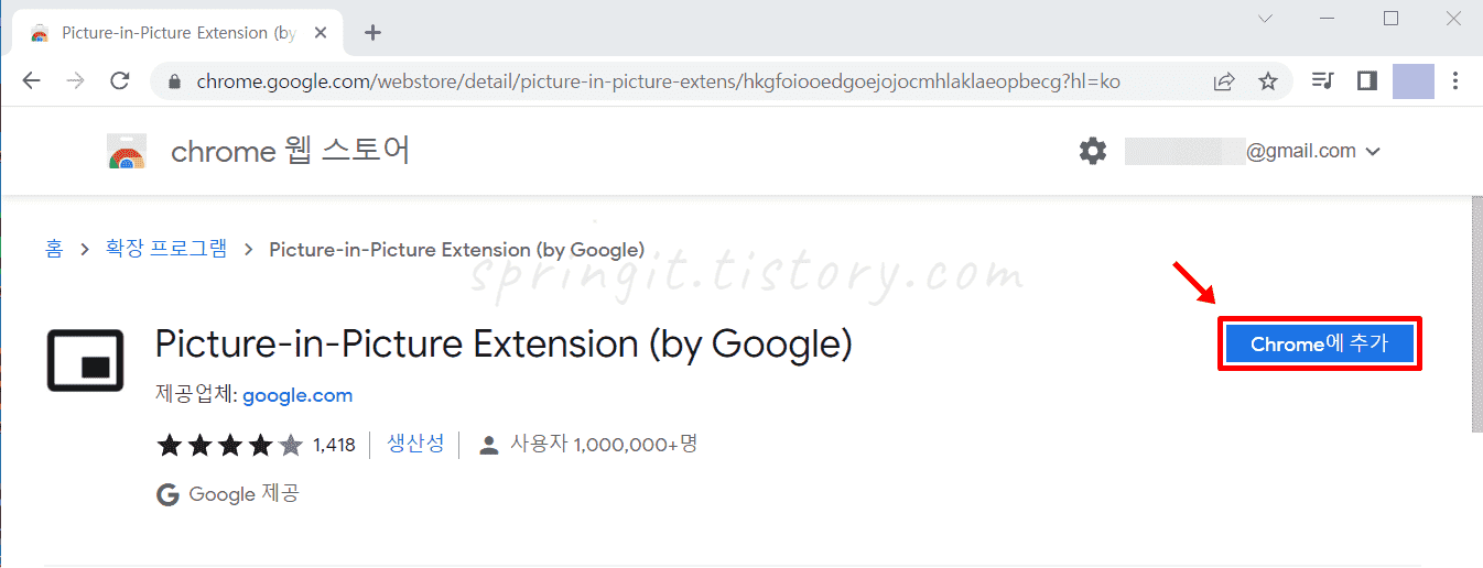 1. PIP Extension 확장프로그램 설치 페이지로 접속합니다.