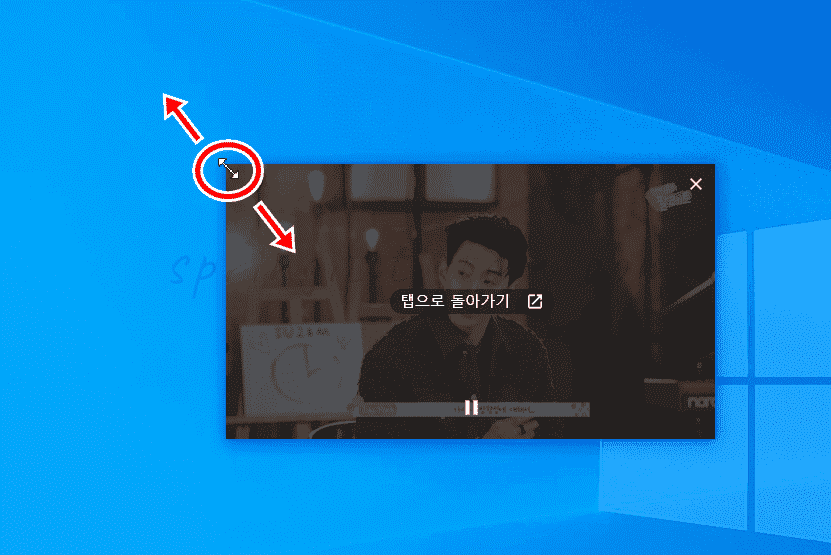 실행된 PIP모드에서 모서리 부분에 마우스를 가져다 댄 후 크기를 늘리거나 줄일 수 있습니다.