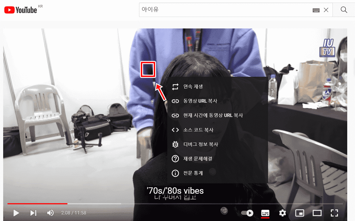 2. 동영상 화면에서 마우스 우클릭합니다.