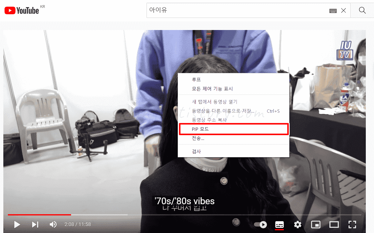 위에서는 크롬 유튜브에서 제공하는 제어 버튼으로 PIP모드를 사용해보았는데요. 만약 크롬이 아닌 익스플로러를 이용한다거나, 오류로 인해서 제어 버튼을 사용할 수 없을 때에는 아래의 마우스 우클릭 두번 방법으로도 PIP모드를 실행시킬 수 있습니다.