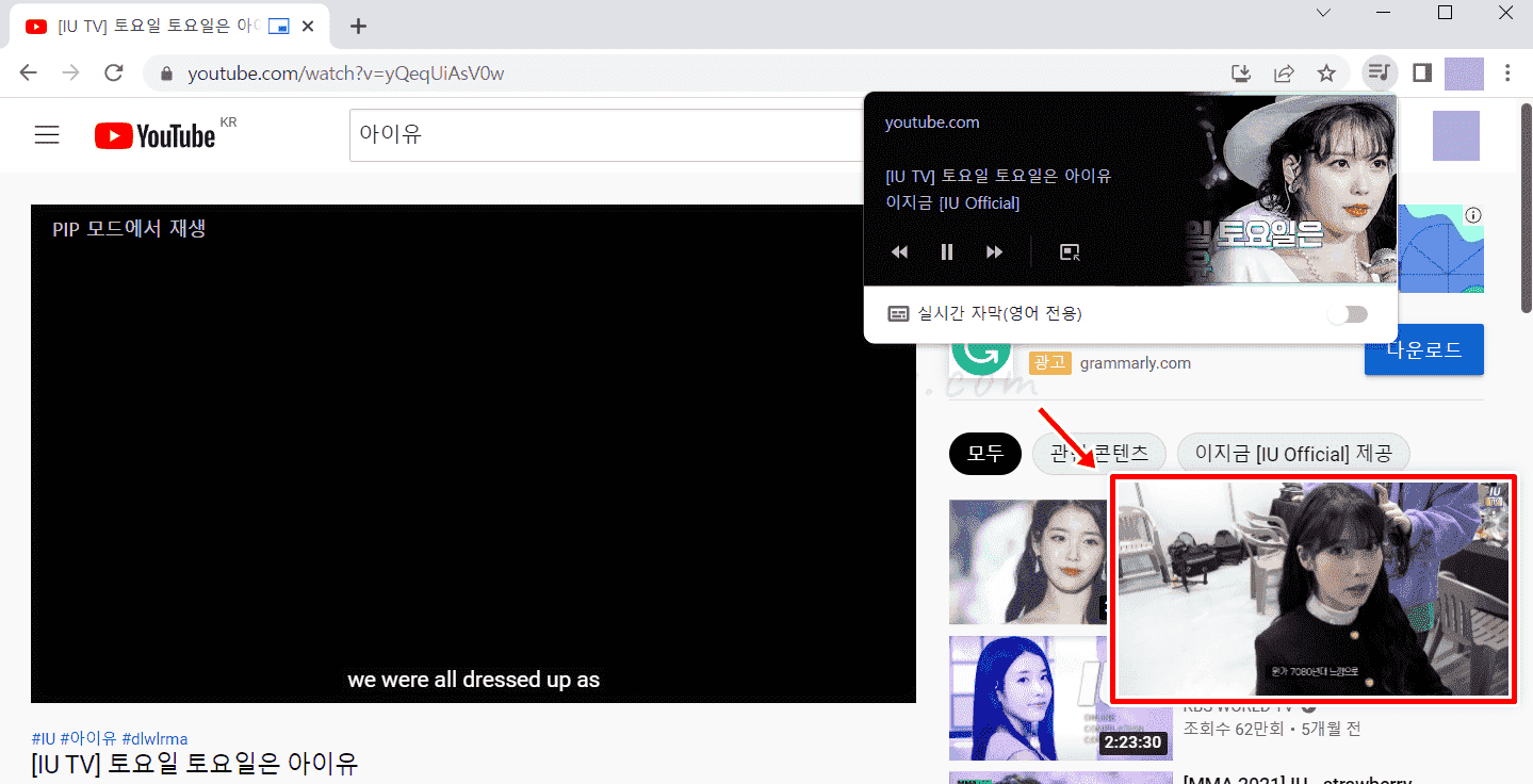5. PC 유튜브 동영상이 PIP모드로 재생됩니다.