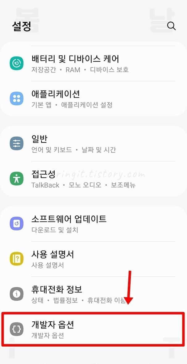 6. 설정 화면 맨 하단에서 개발자 옵션을 확인할 수 있습니다.