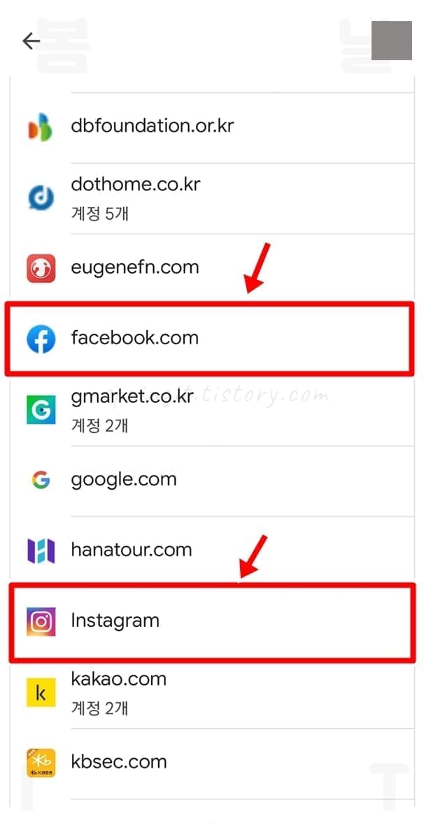 'Google Smart Lock을 사용하여 저장된 인스타그램 계정 선택' 이라는 팝업과 함께 내가 로그인했던 계정이 쭉 나열되게 됩니다. 편리하게 사용할 수 있는 한편 내가 아닌 다른 사람이 내 PC/스마트폰을 사용하면 쉽게 로그인해서 내 개인정보를 훔쳐볼 수도 있기 때문에 보안상 우려가 되는 부분이 많습니다. 보통 가족이 함께 쓰는 태블릿/PC에서 구글 스마트락으로 내 계정 정보가 설정되어 있을 경우 정보를 삭제하거나 기능을 해제해주시는 것이 좋겠죠.