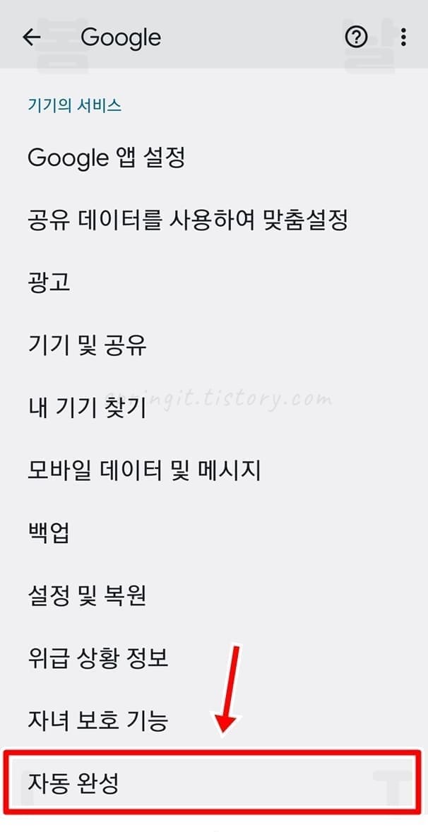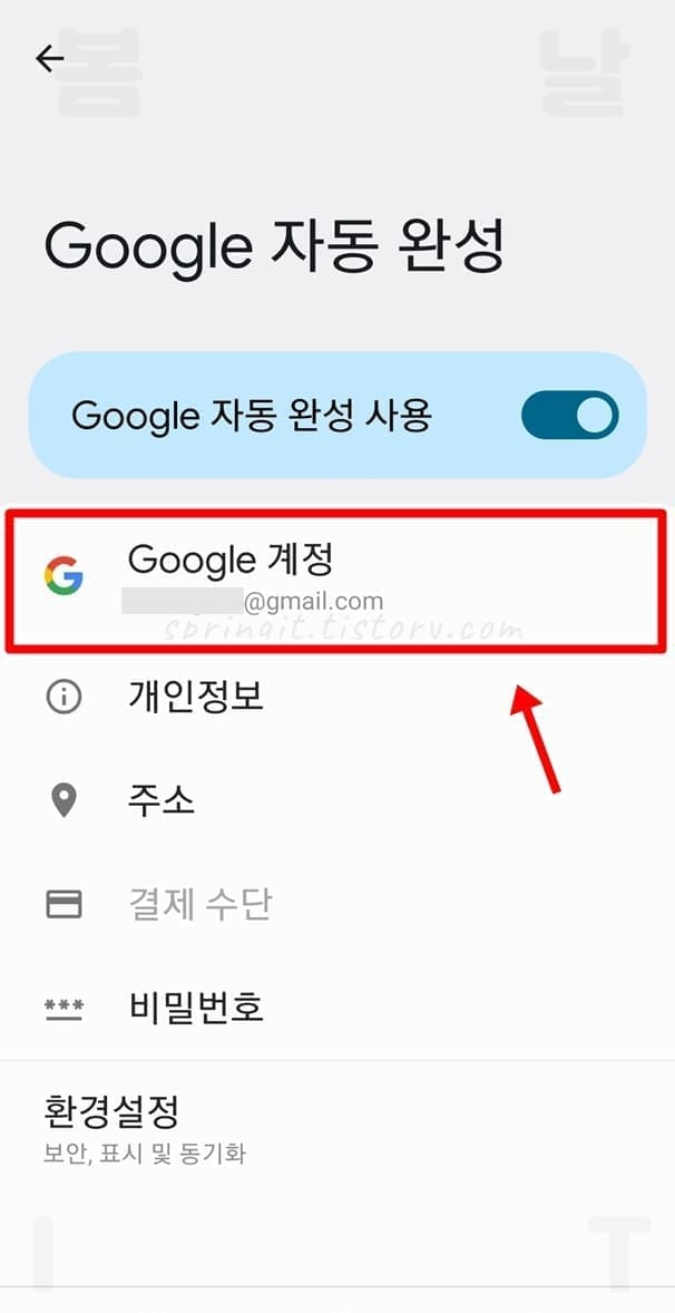 1. 구글 자동 완성 페이지에서 Google 계정을 클릭합니다.