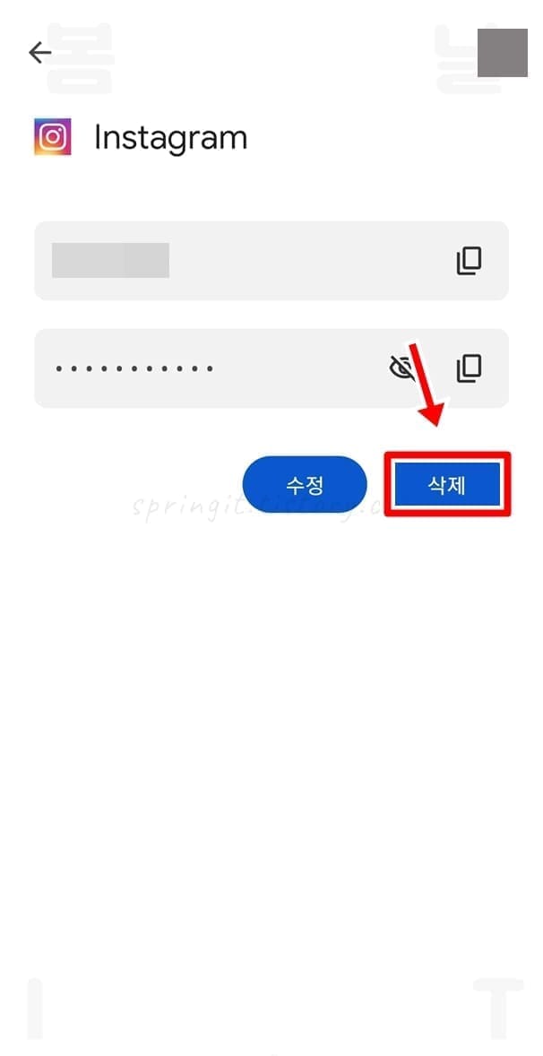 8. 등록된 계정 정보 아래 삭제 버튼을 누릅니다.