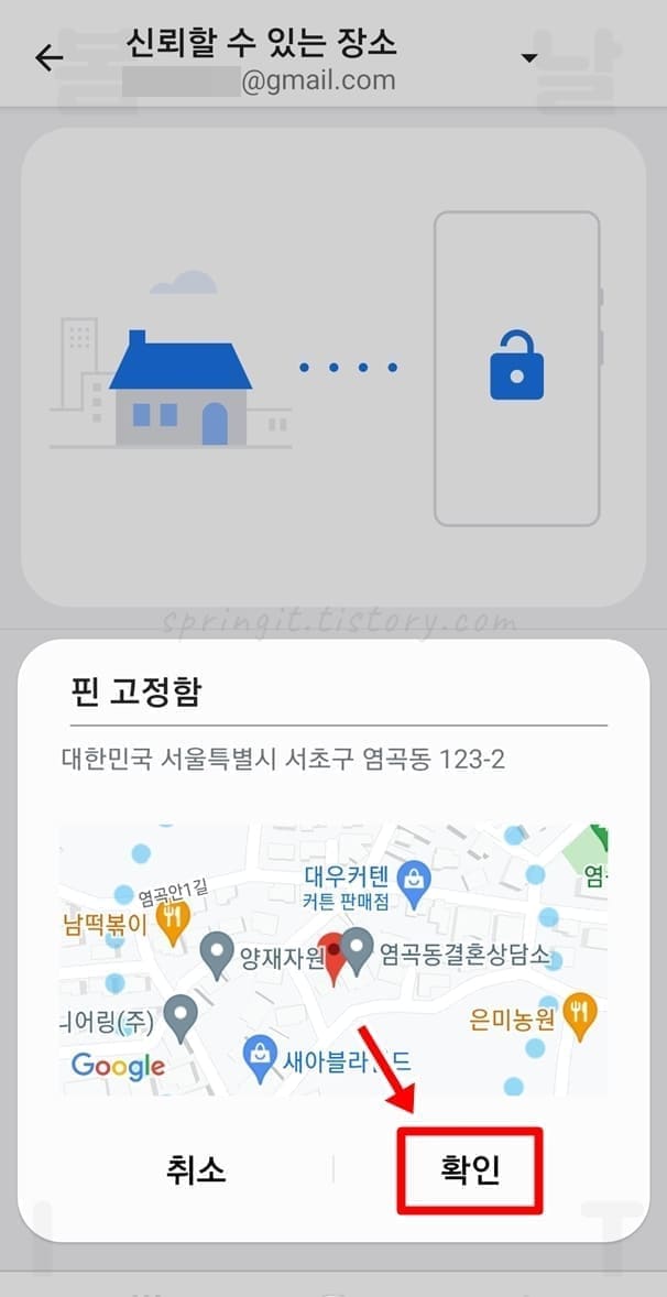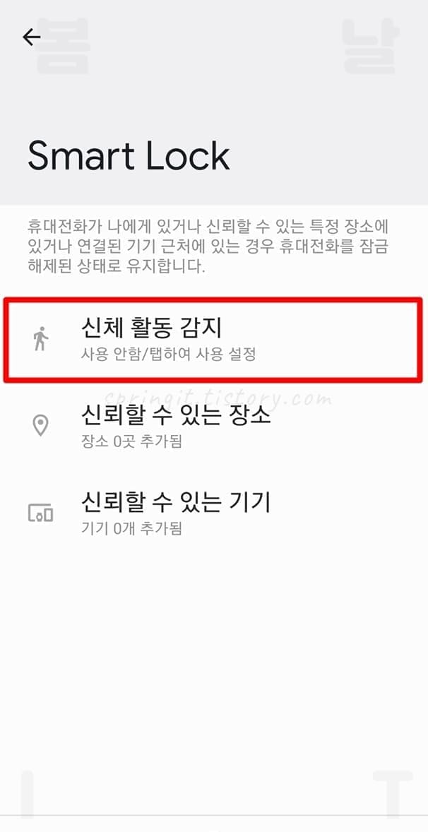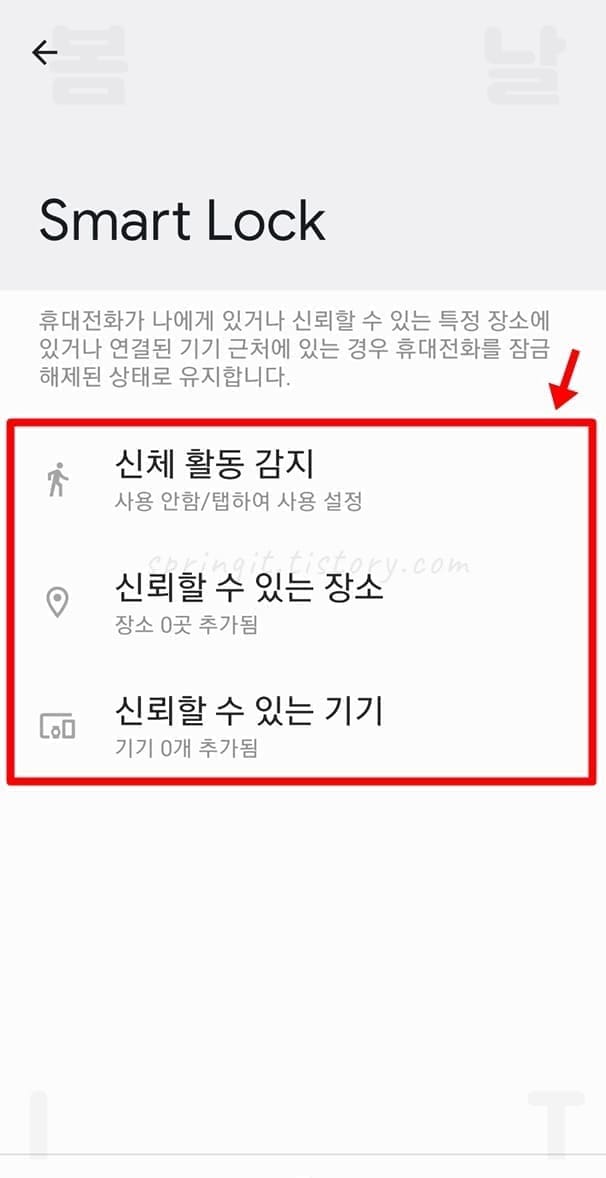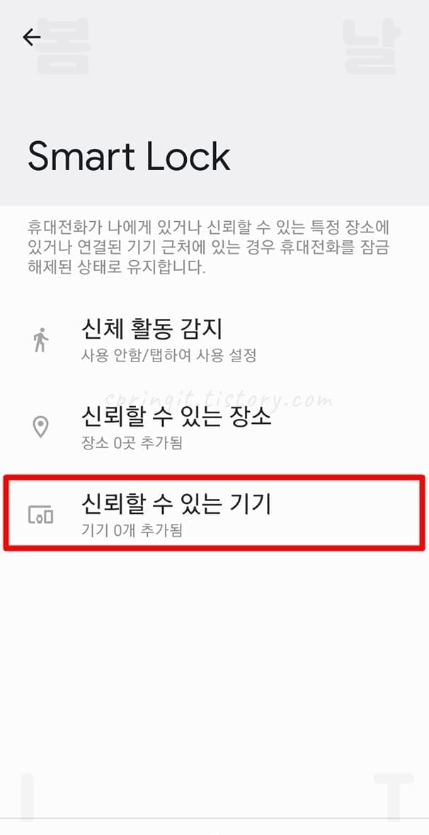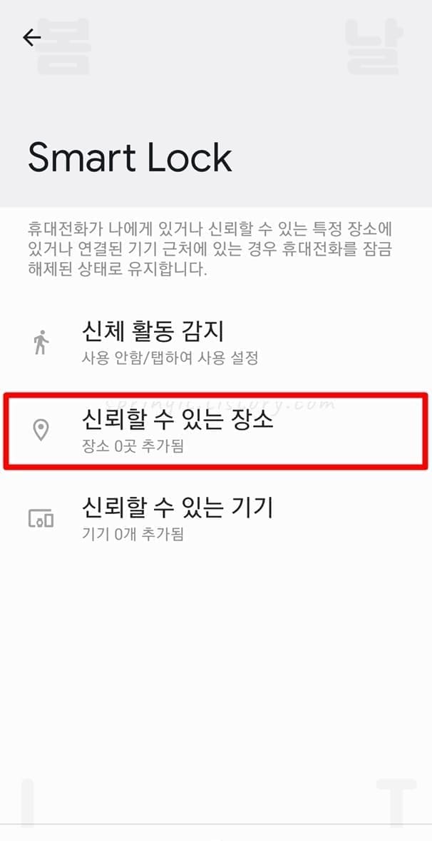 1. 스마트락 페이지에서 신뢰할 수 있는 장소를 누릅니다.