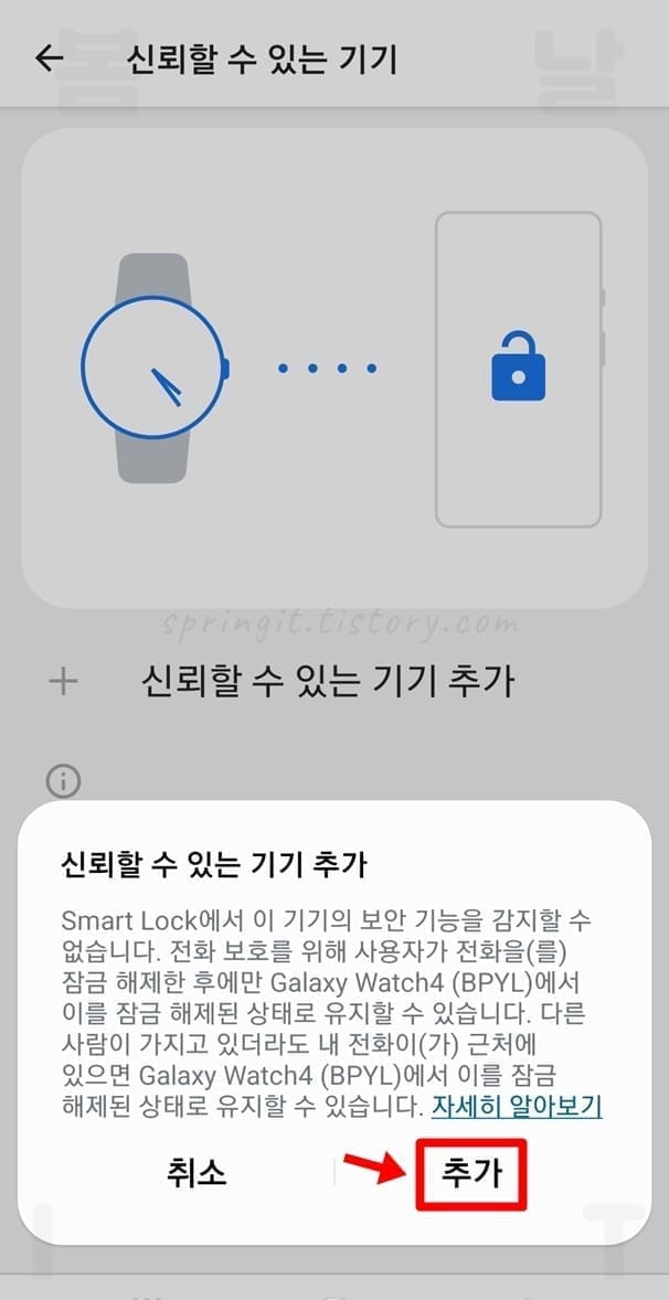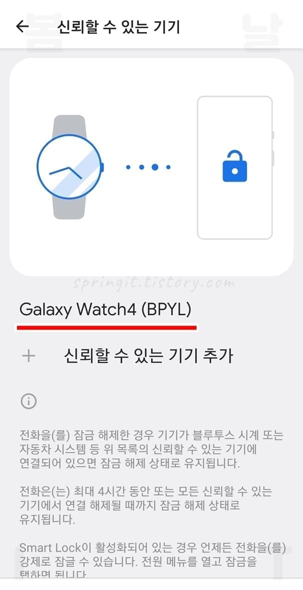 4. 추가버튼을 누르면 신뢰할 수 있는 기기로 스마트락이 설정됩니다.