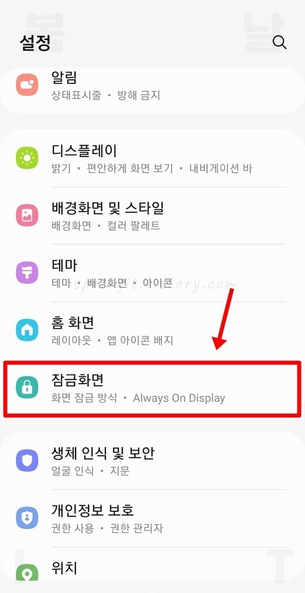 2. 잠금화면을 누릅니다.