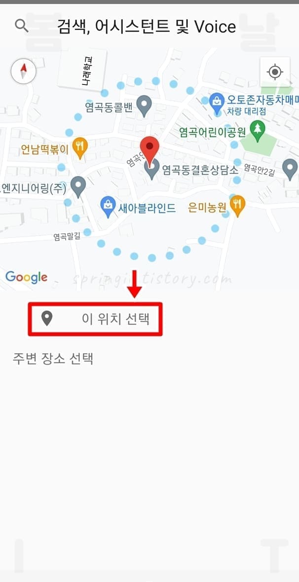 3. 지도상에서 위치를 확인하고 선택 버튼을 클릭합니다.