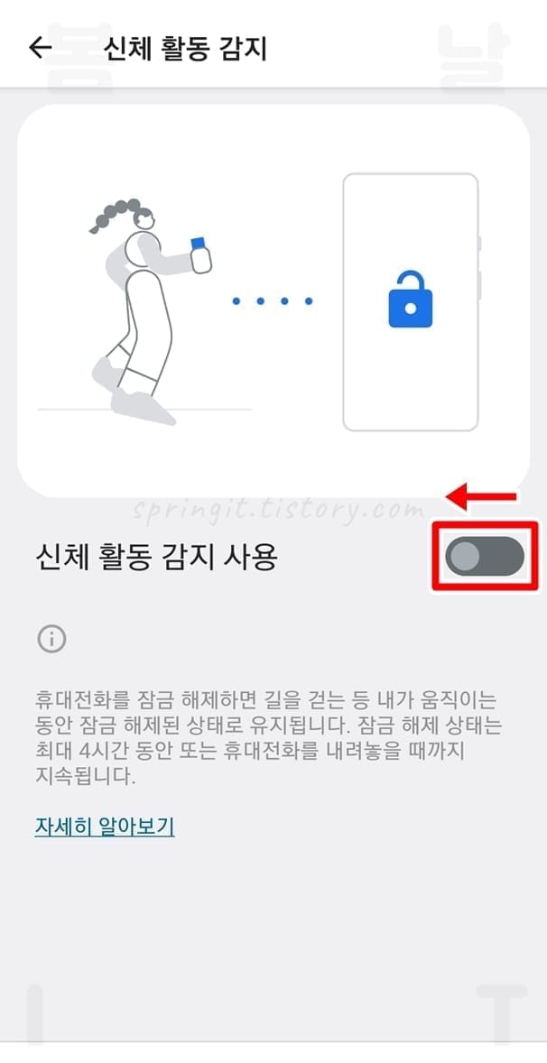 갤럭시 스마트락 신체 활동 감지 설정 및 해제