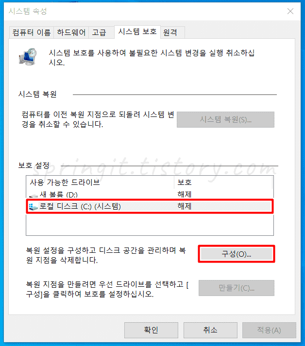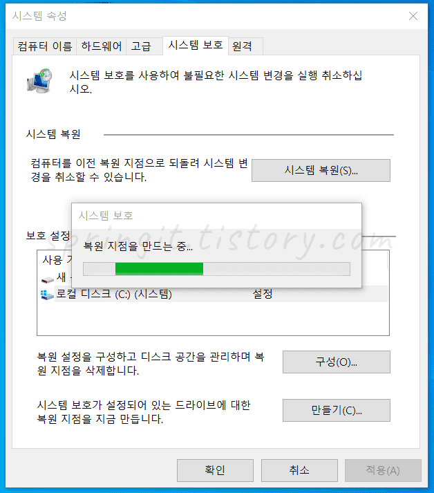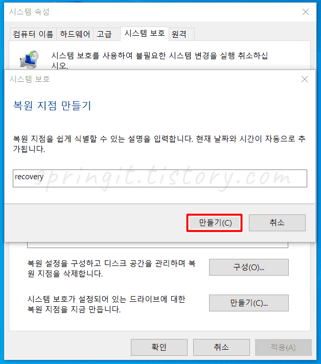 윈도우10 복원지점 만들기