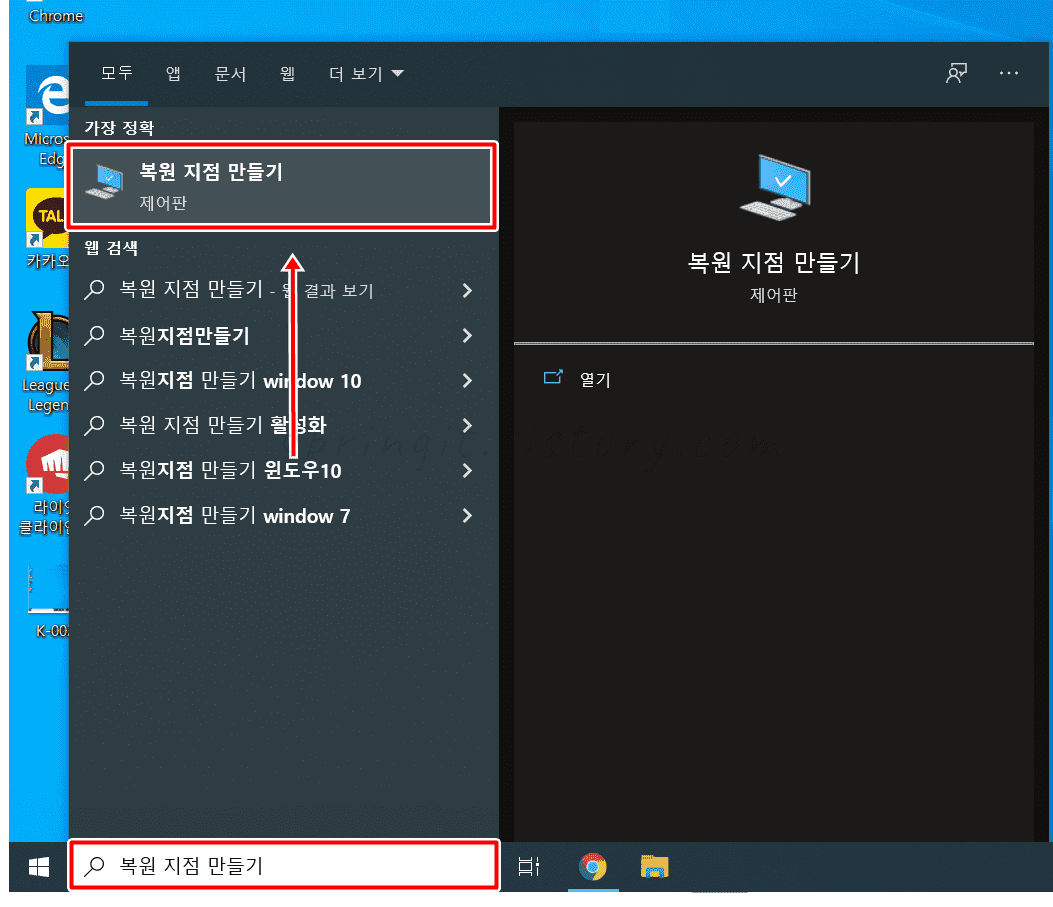 2. 복원 지점 만들기를 검색합니다.