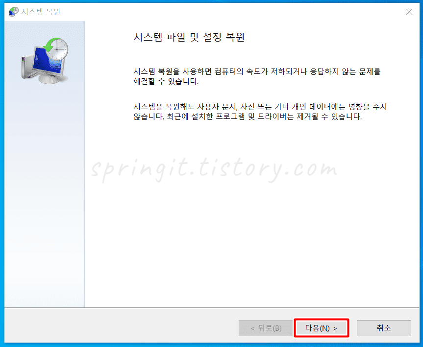 윈도우10 복원 지점으로 되돌리는 방법