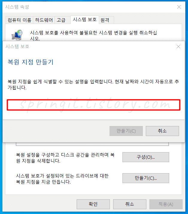10. 복원 지점을 쉽게 식별할 수 있는 설명을 입력합니다.