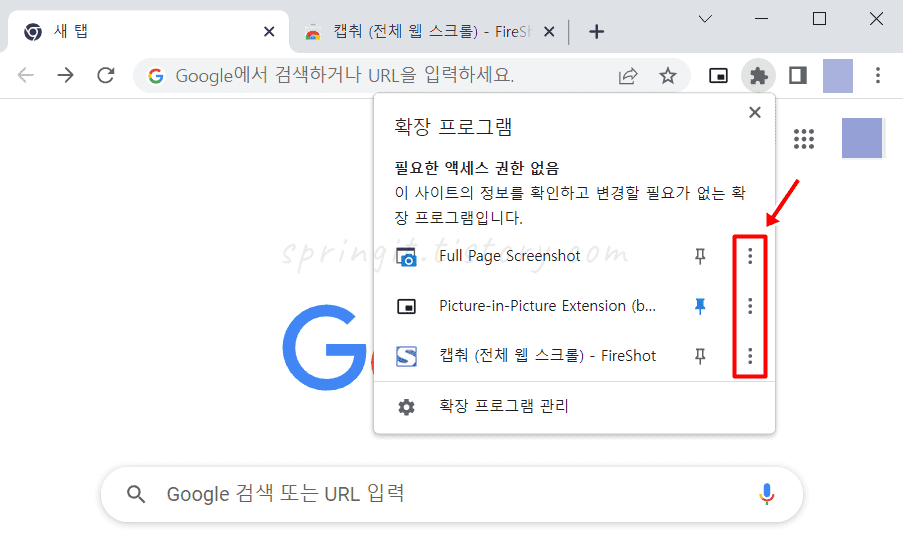 상단창에서 크롬 확장프로그램 삭제하기