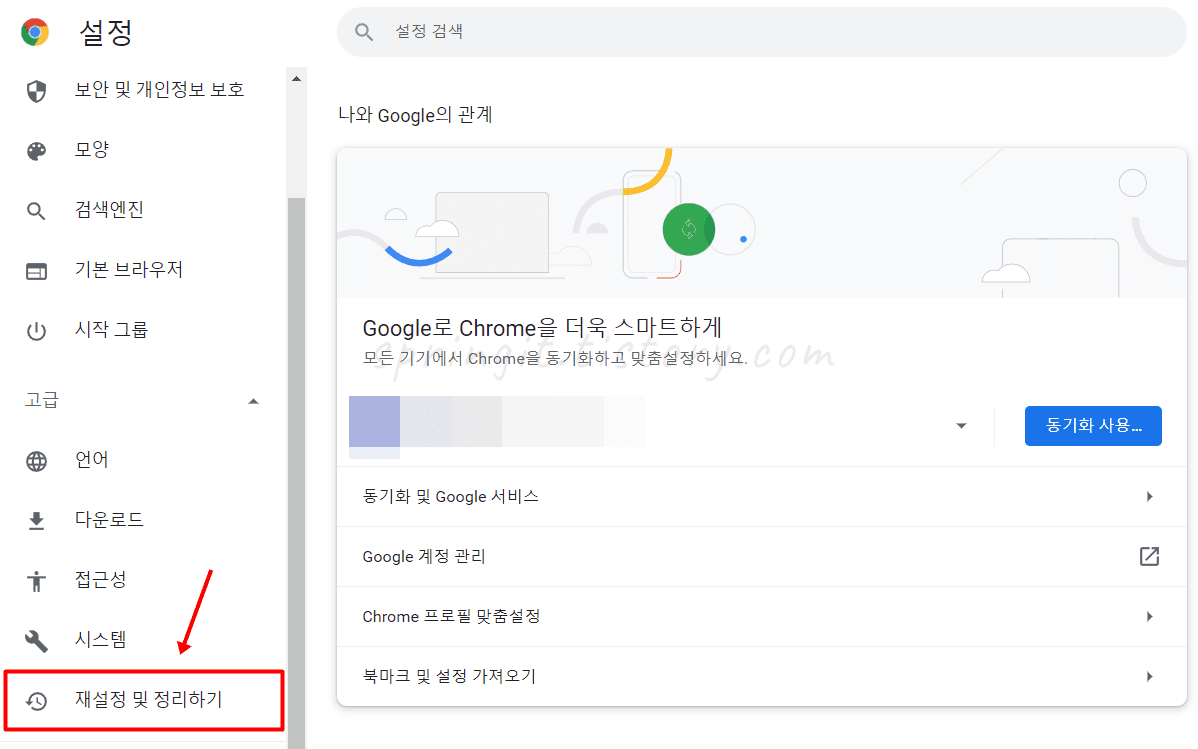 3. 재설정 및 정리하기를 클릭합니다.