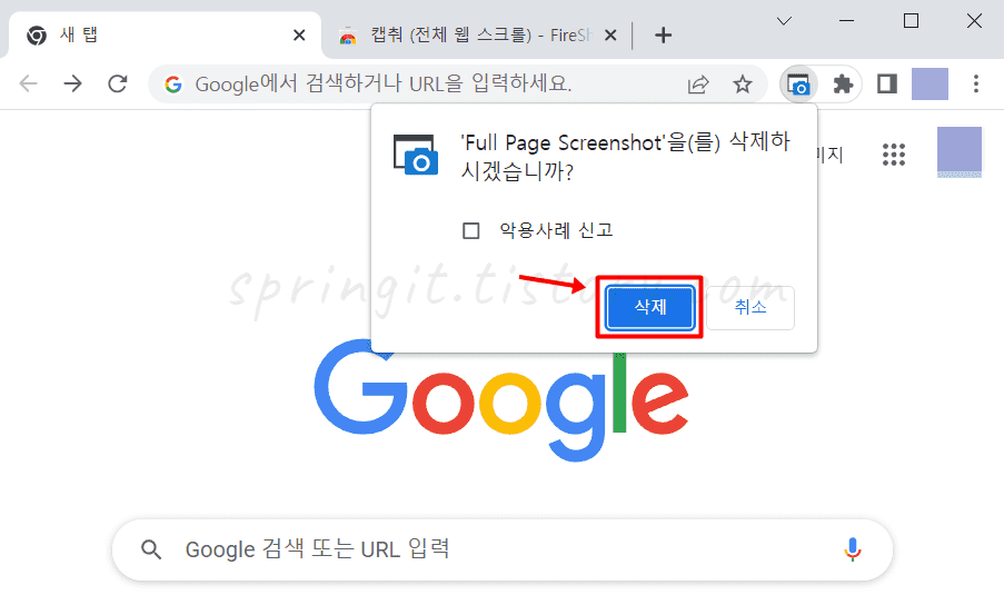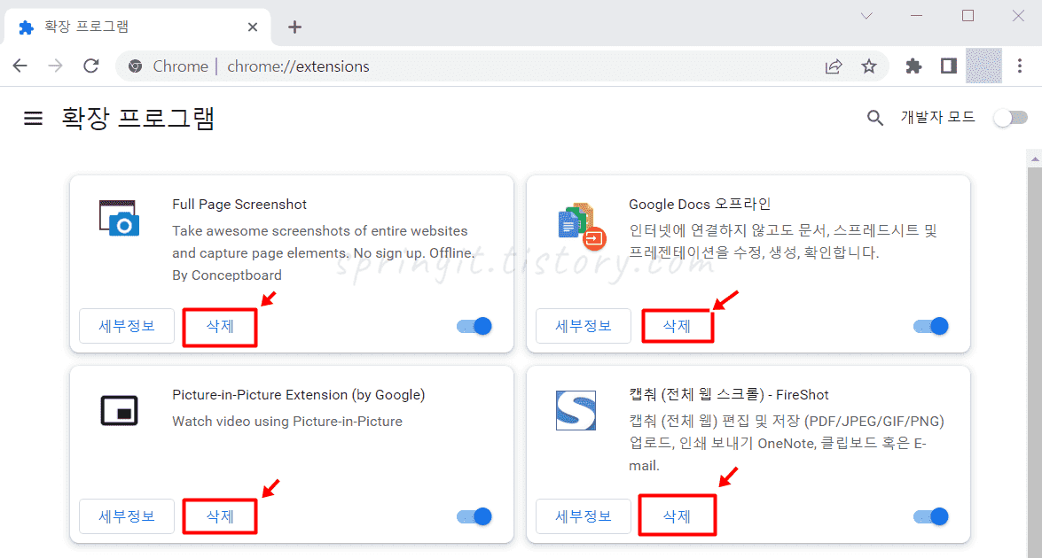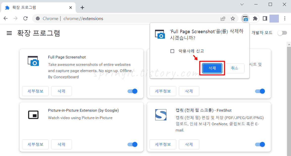 5. 삭제 버튼을 누르면 확장프로그램이 지워집니다.