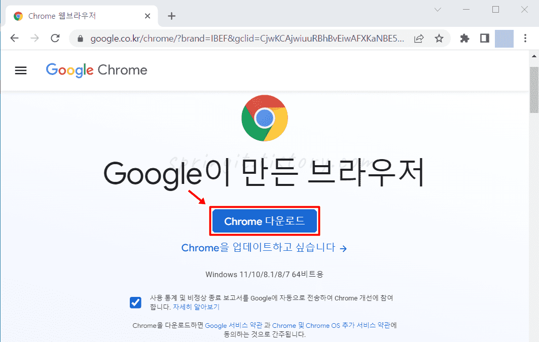 1. 크롬 브라우저 다운로드 페이지로 접속합니다.
