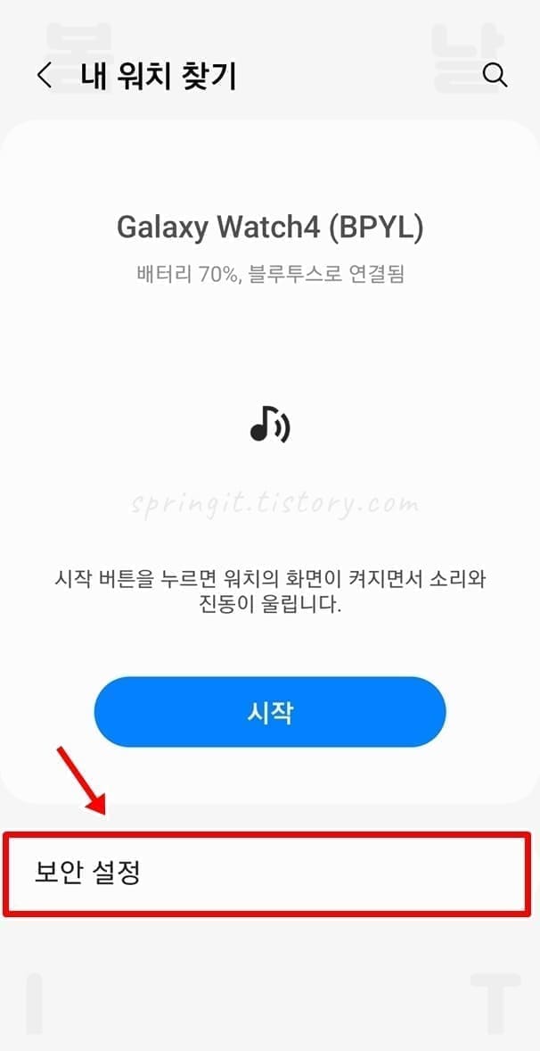 1. 내 워치 찾기 아래에서 보안 설정을 클릭합니다.