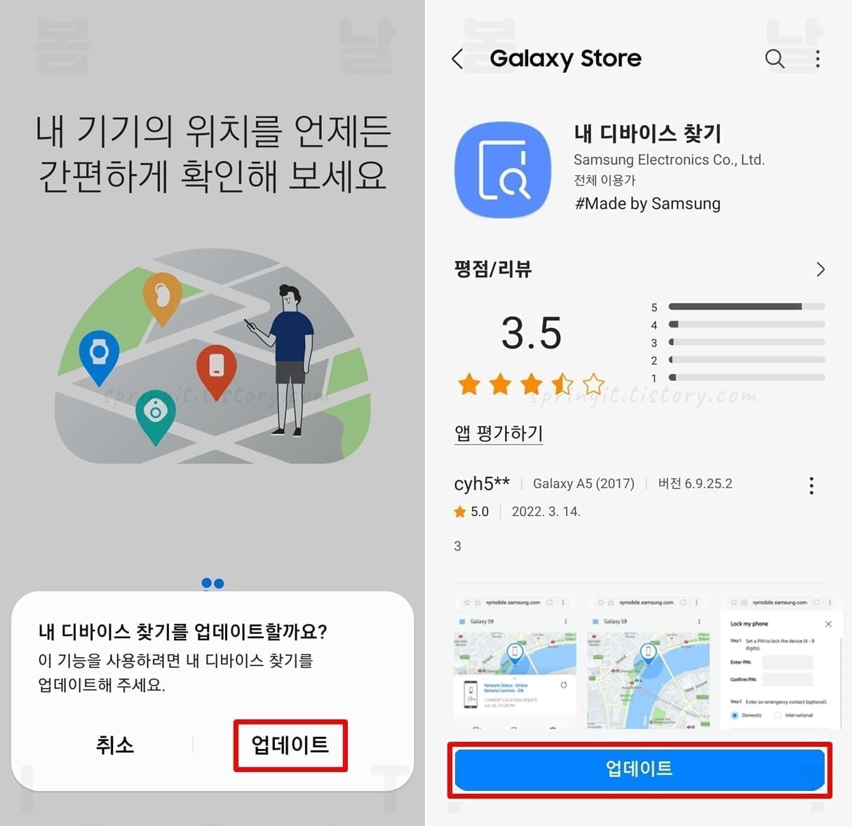 3. 내 디바이스 찾기 어플을 설치 및 업데이트합니다.