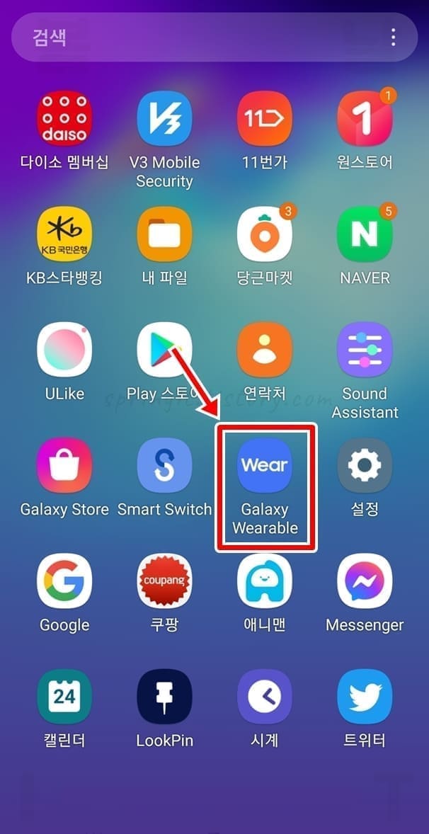 1. 스마트폰에서 Galaxy Wearable 어플을 실행합니다.