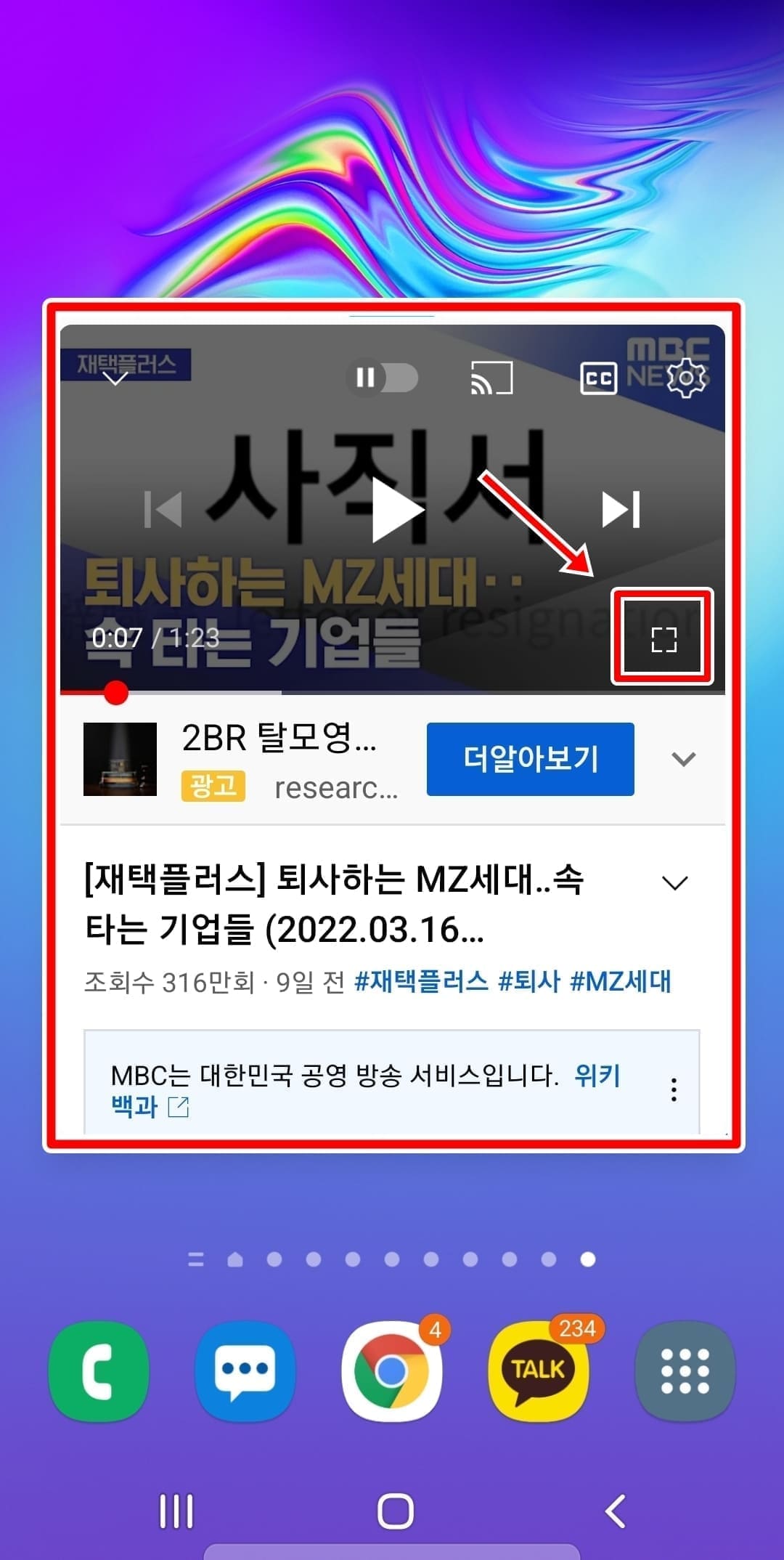 5. 갤럭시에서 유튜브를 PIP모드로 볼 수 있습니다.