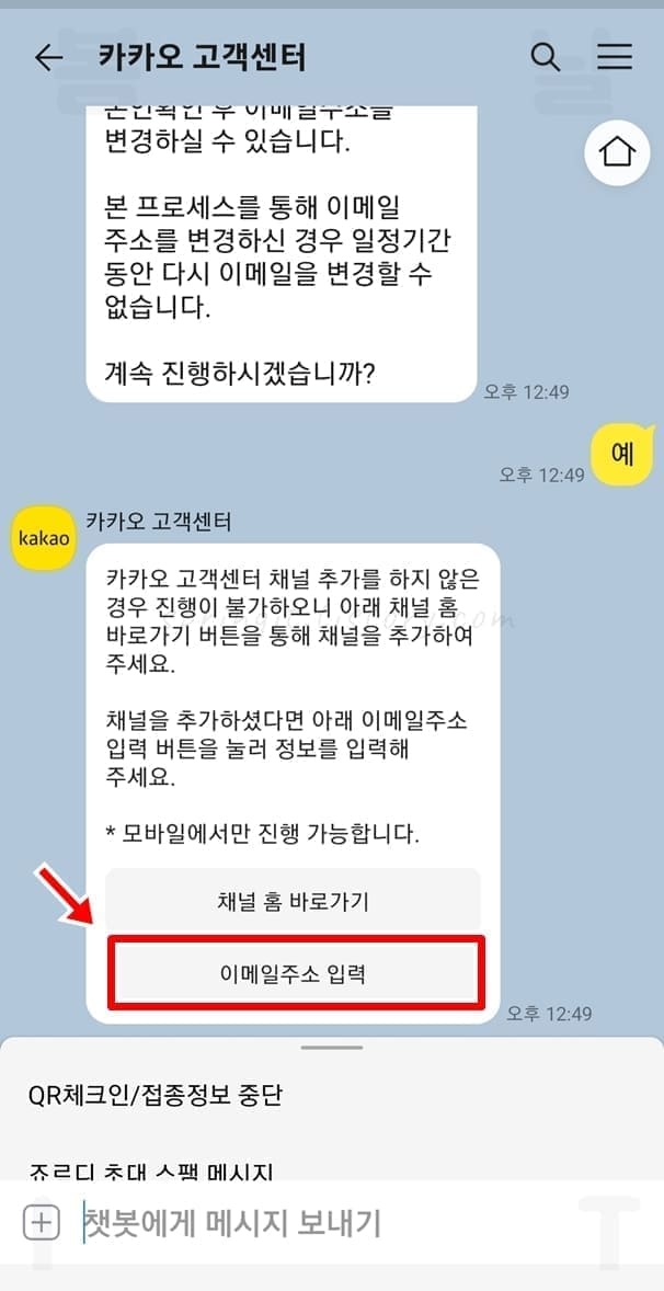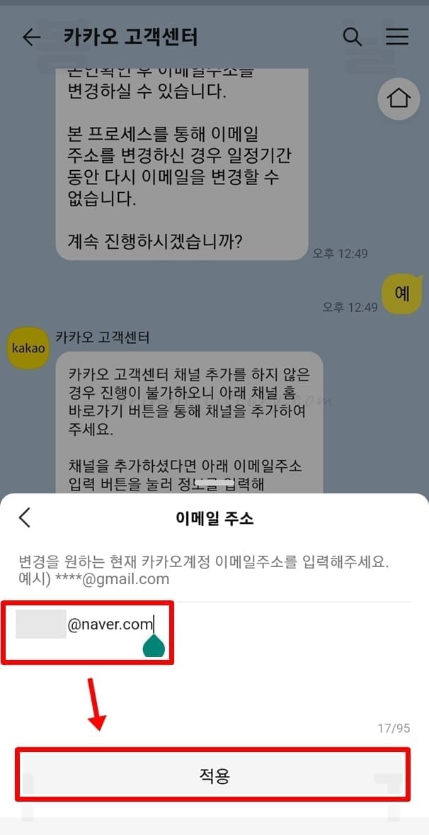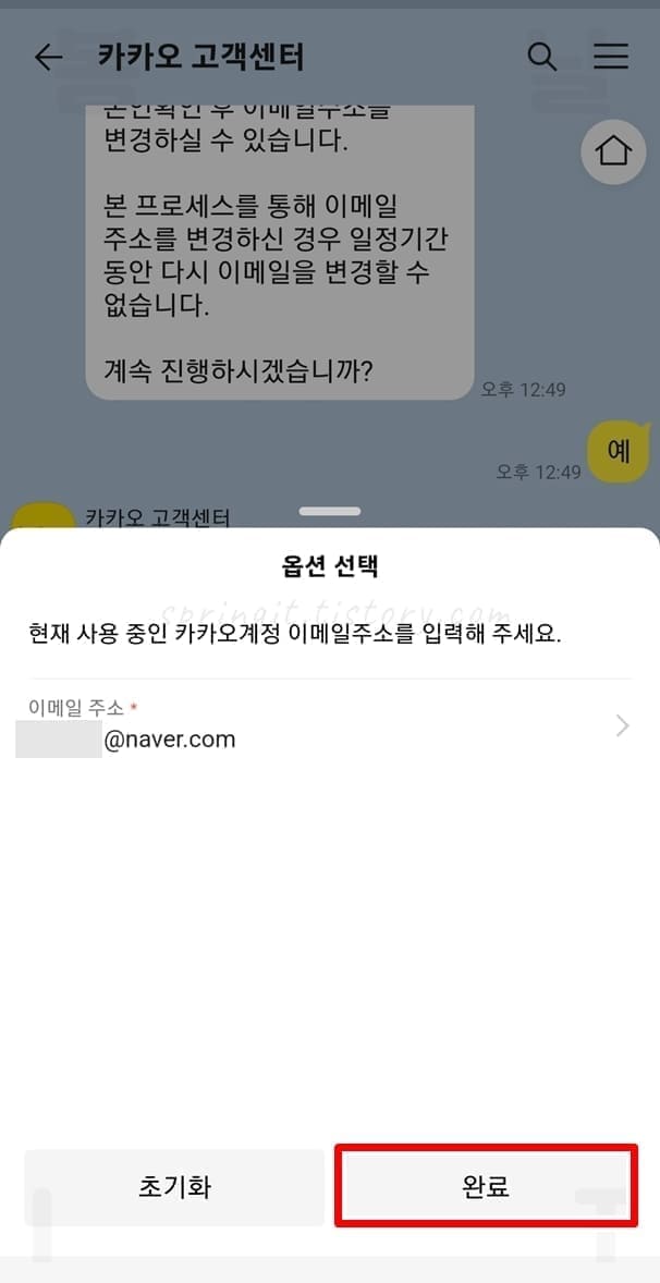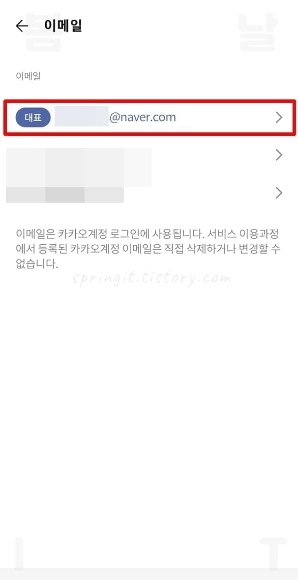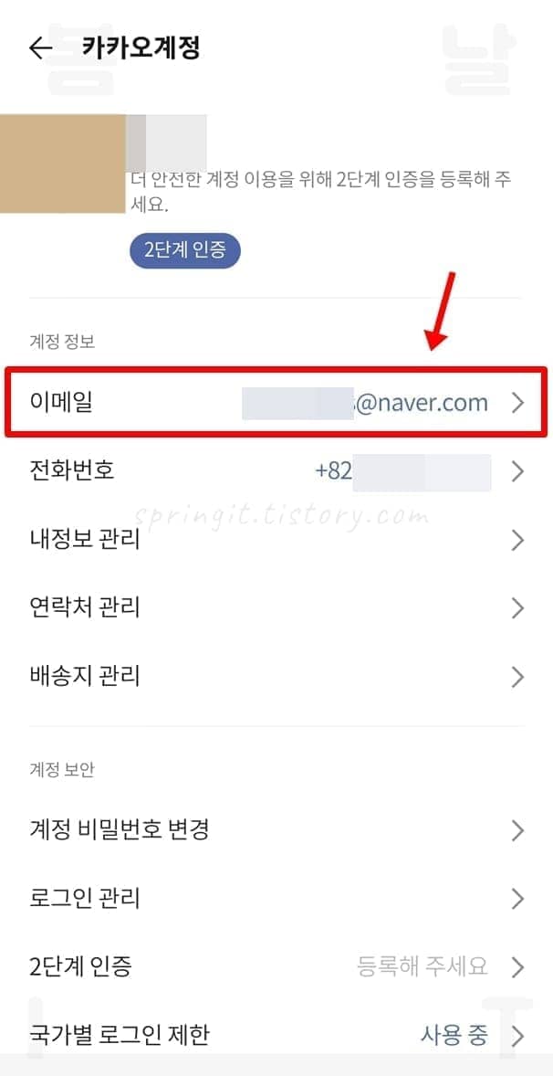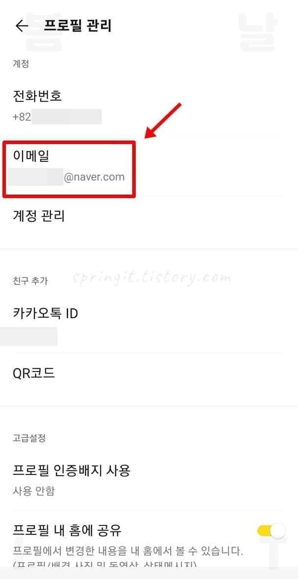 카카오톡 이메일 변경이 되었는지 확인해보기
