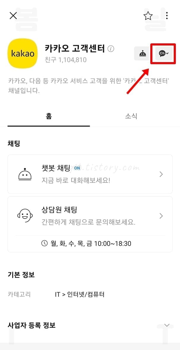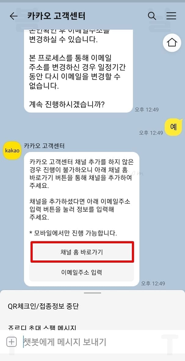 카카오 고객센터 채널을 추가하지 않으면 이메일 주소 변경이 불가능합니다. 그러니 우선 채널 홈에 가셔서 채널을 추가해주셔야 합니다.