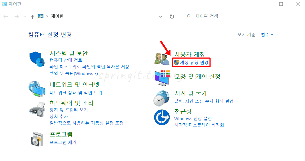 3. 사용자 계정에서 계정 유형 변경을 클릭합니다.