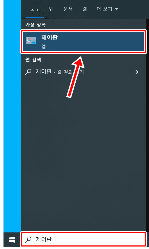 1. 작업표시줄 검색창에서 제어판을 입력합니다.