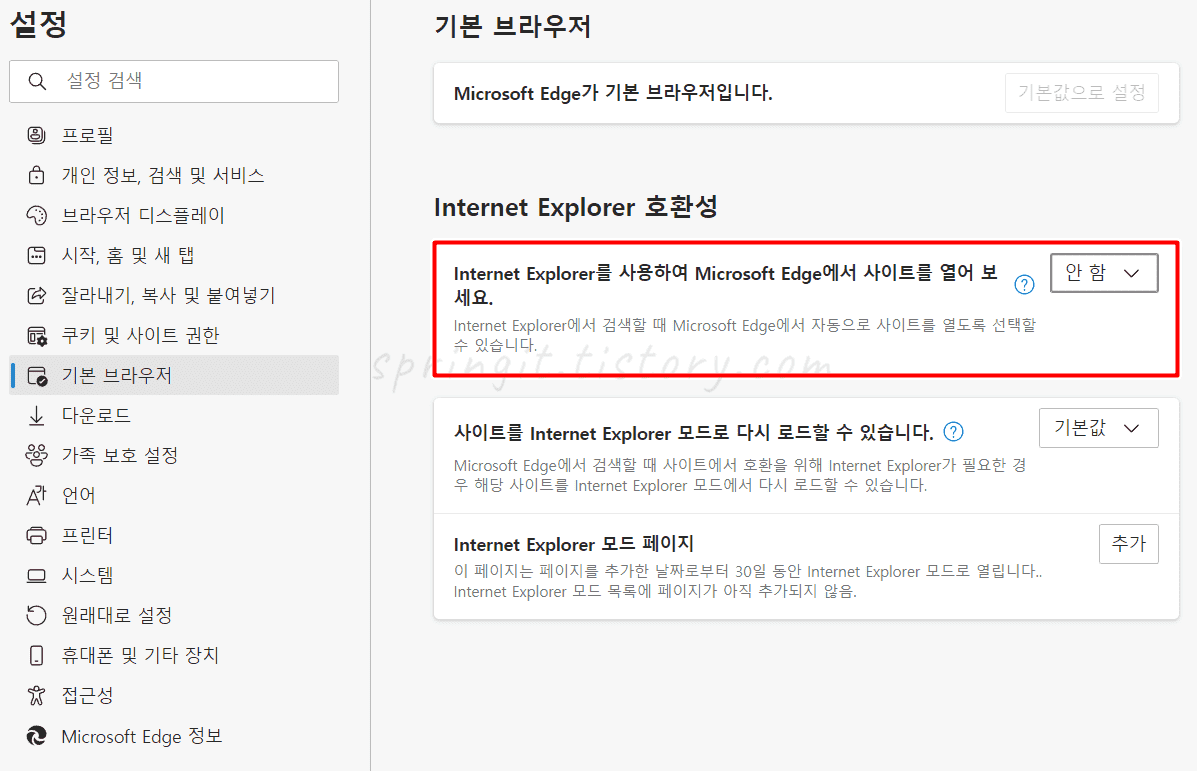 익스플로러 엣지 자동전환 해제하는 방법