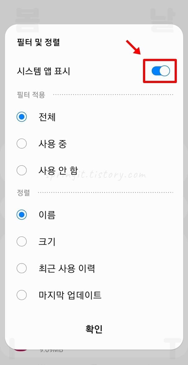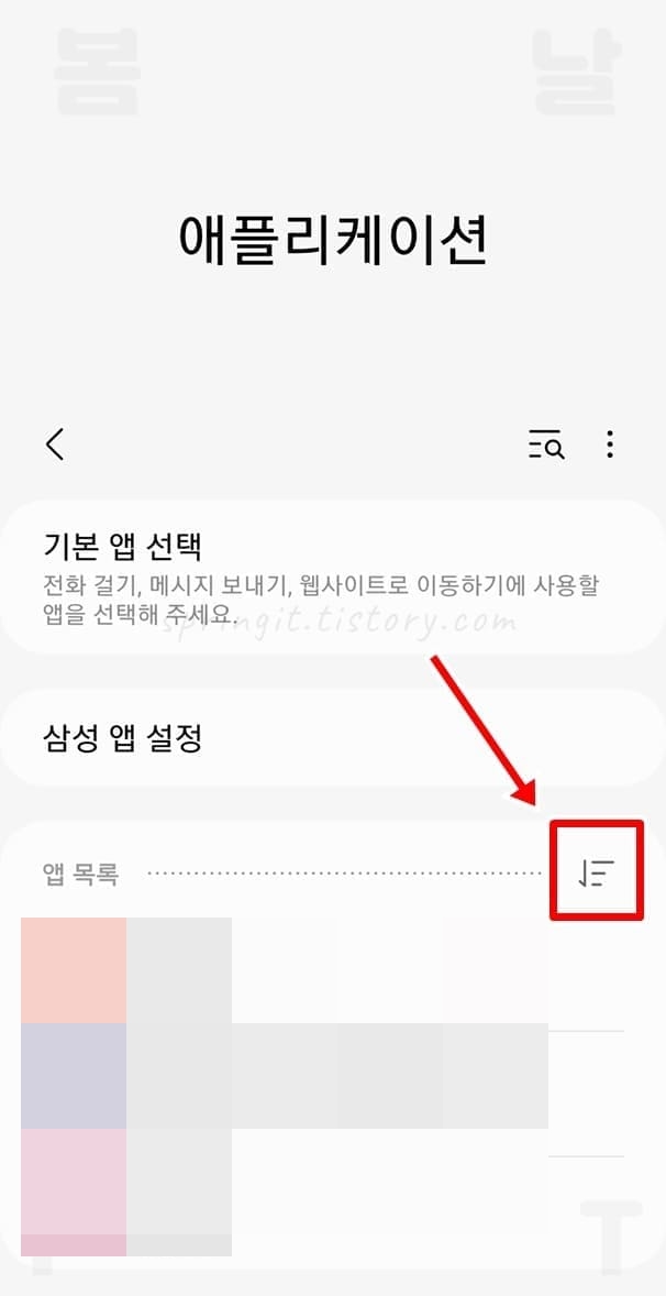 3. 앱 목록 우측의 필터 버튼을 클릭합니다.