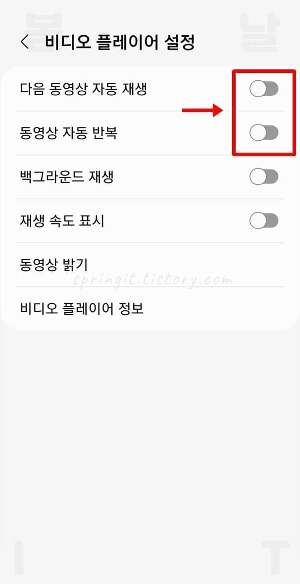 5. 다음 동영상 자동재생 기능을 비활성화합니다.