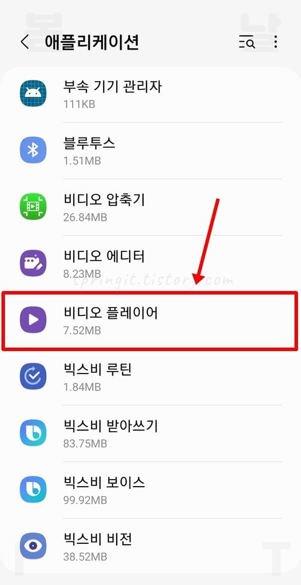 5. 애플리케이션 목록에서 비디오 플레이어를 클릭합니다.