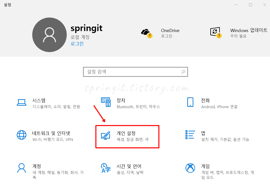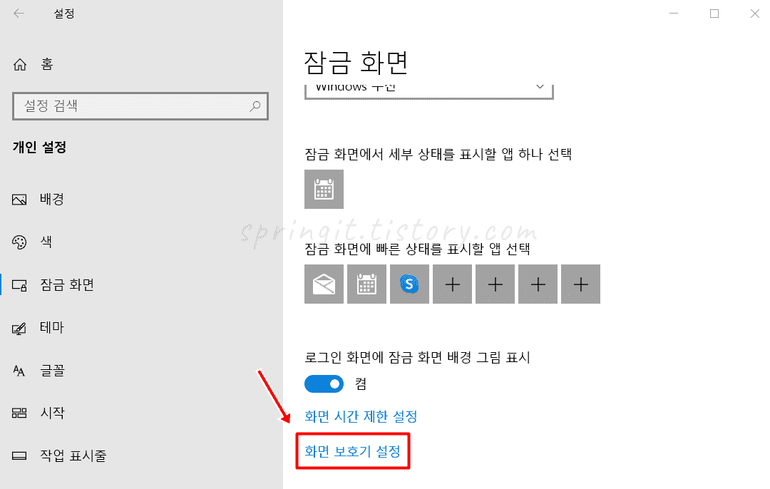 1. 개인설정 > 잠금화면 페이지로 들어갑니다.