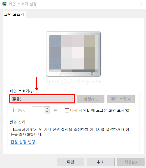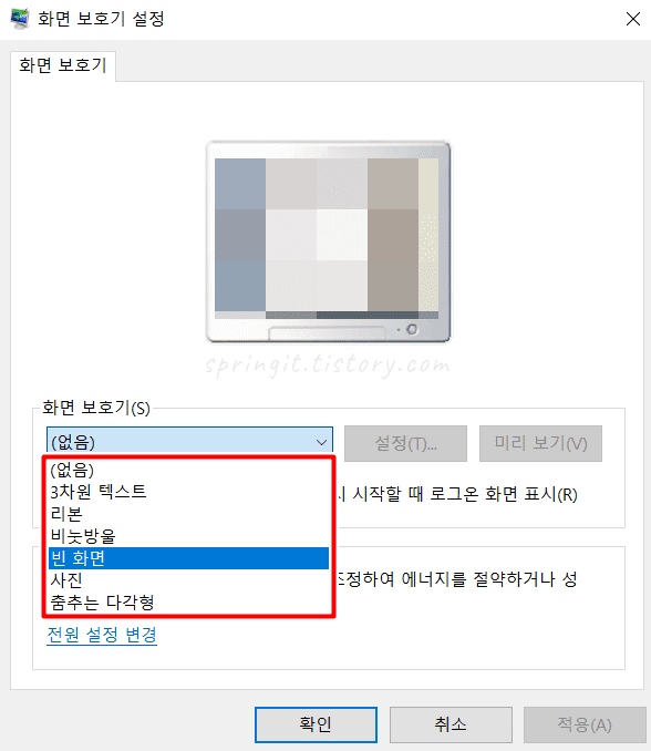 참고로 윈도우10 화면보호기 설정을 해제하고 싶으시다면 이곳에서 (없음)으로 다시 적용해주시면 되니 기억해두세요.